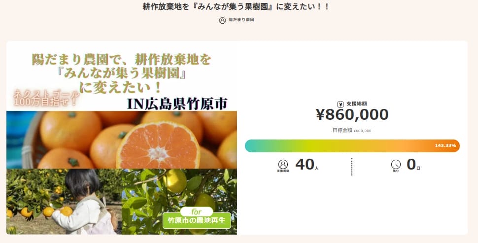 耕作放棄地を再生するための果樹園に植える苗木のオーナーさんをクラウドファンディングのリターンで募集したことで、支援者が仲間になることができるという経験が多くの方の共感を生