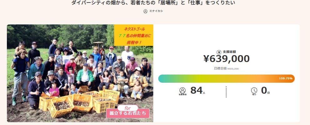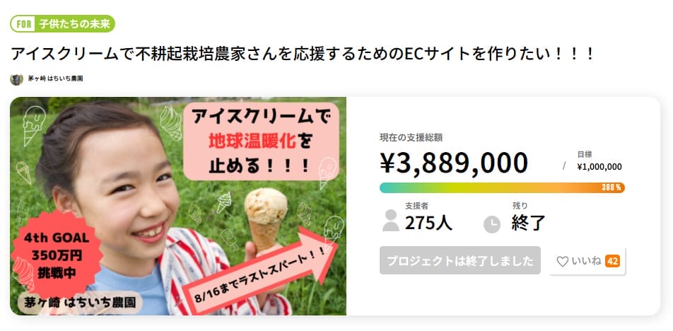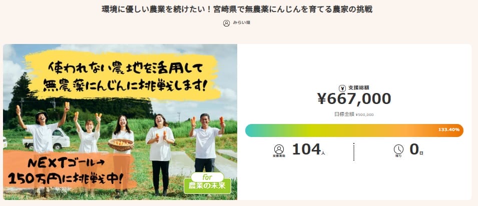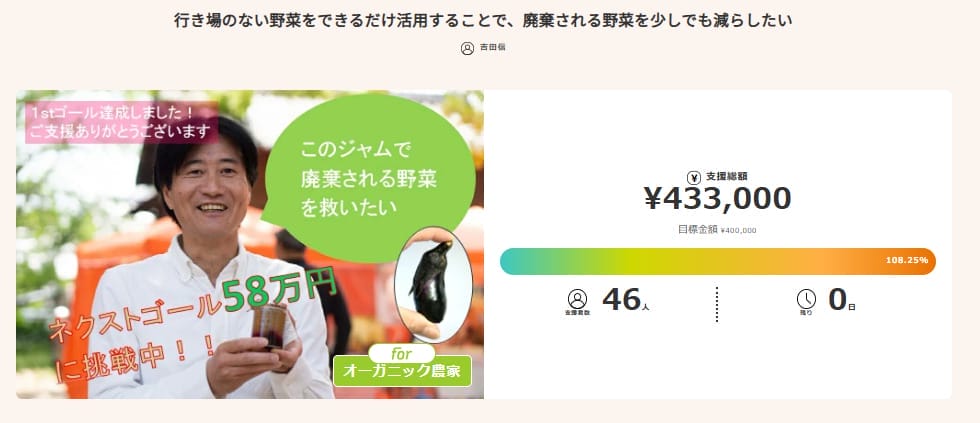 「このままでは農業を継続できないので支援して下さい」という利己的なプロジェクトは応援されにくいので注意です。