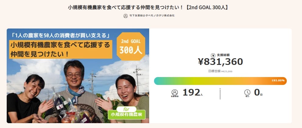 「農業を継続させて、多くの人に健康的な野菜を届けたい」といったような社会貢献の側面を伝えることで、共感が生まれ応援を集めやすくなります。