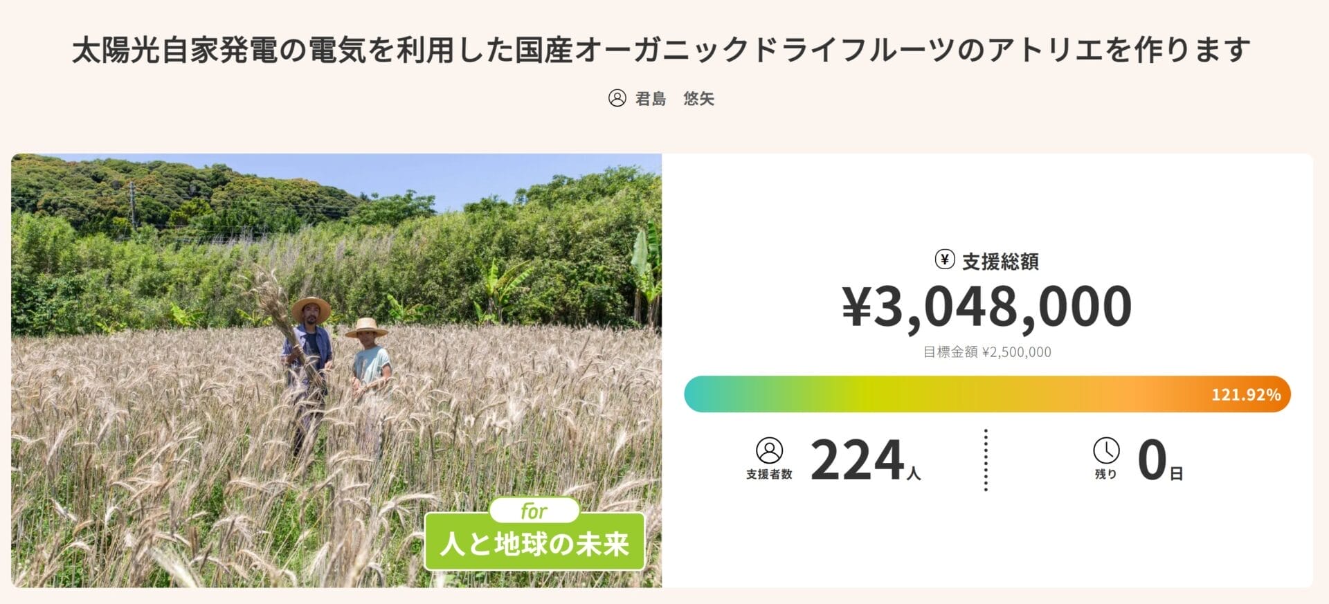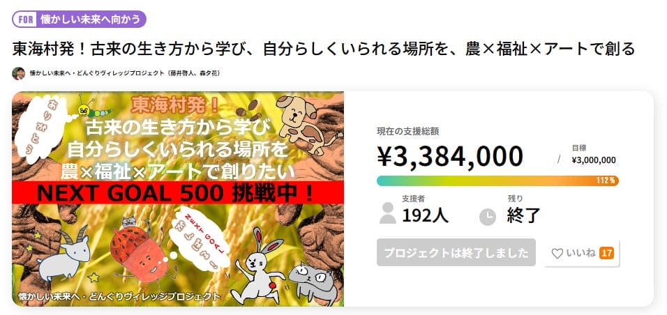 クラウドファンディングに挑戦されました。目指す未来に共感した方々が中心となり応援が集まったことで成功に繋がったケースです。