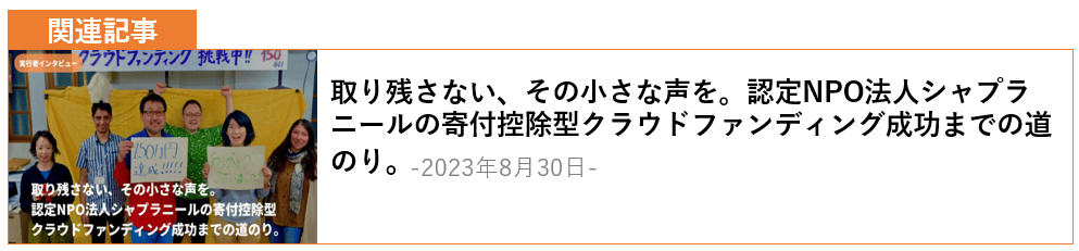 For Goodで寄附金控除クラウドファンディングに挑戦したインタビュー記事についても掲載していますので、以下からぜひご覧ください。