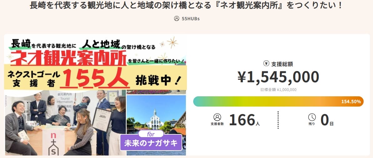 長崎居留地に観光客と地域資源を繋げる新しい拠点として、「ネオ観光案内所」を開設するプロジェクトで、クラウドファンディングが利用されました。