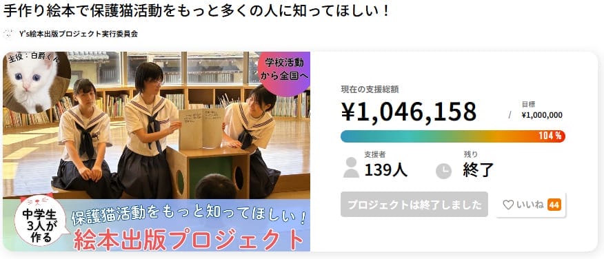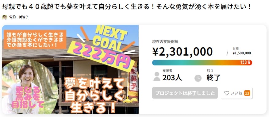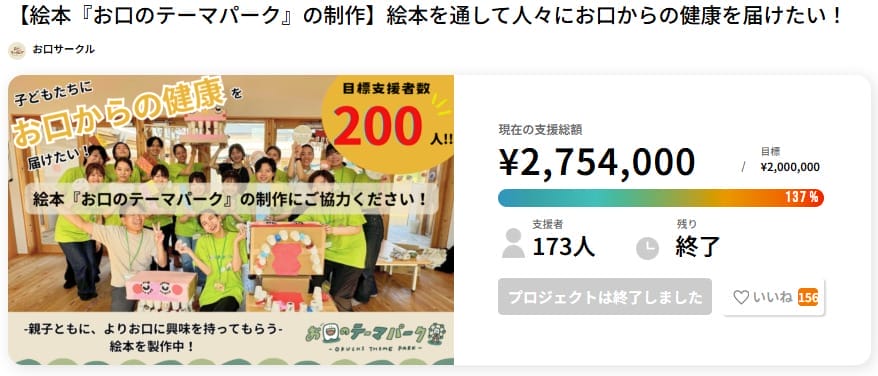 こちらのプロジェクトは最終的に目標金額を大きく上回る170万円以上の支援を集めたプロジェクトになっています。