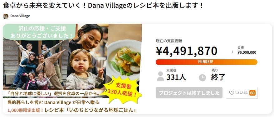 結果としてこちらのプロジェクトは、目標金額を大きく上回る60万円以上の支援を募ることができたプロジェクトとなりました。
