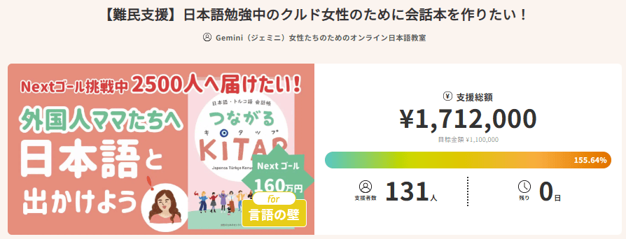 この問題を解決するべく今回のクラウドファンディングでは、クルド女性に向けた日本語学習の本を出版するため、支援を募りました。