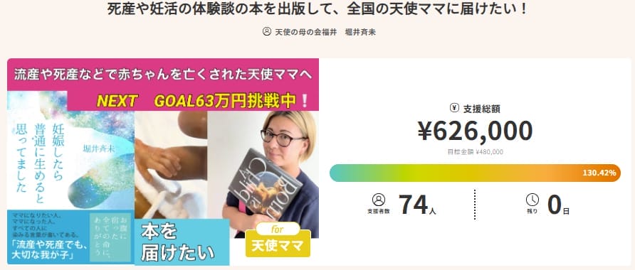 流産や死産などで赤ちゃんを亡くされたママに向けた本を出版するためのクラウドファンディングです。