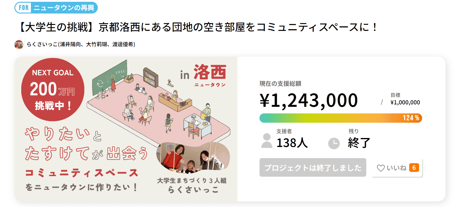 このプロジェクトは、京都洛西の団地の空き部屋を地域住民と学生が交流できるコミュニティスペースに改装する取り組みです。