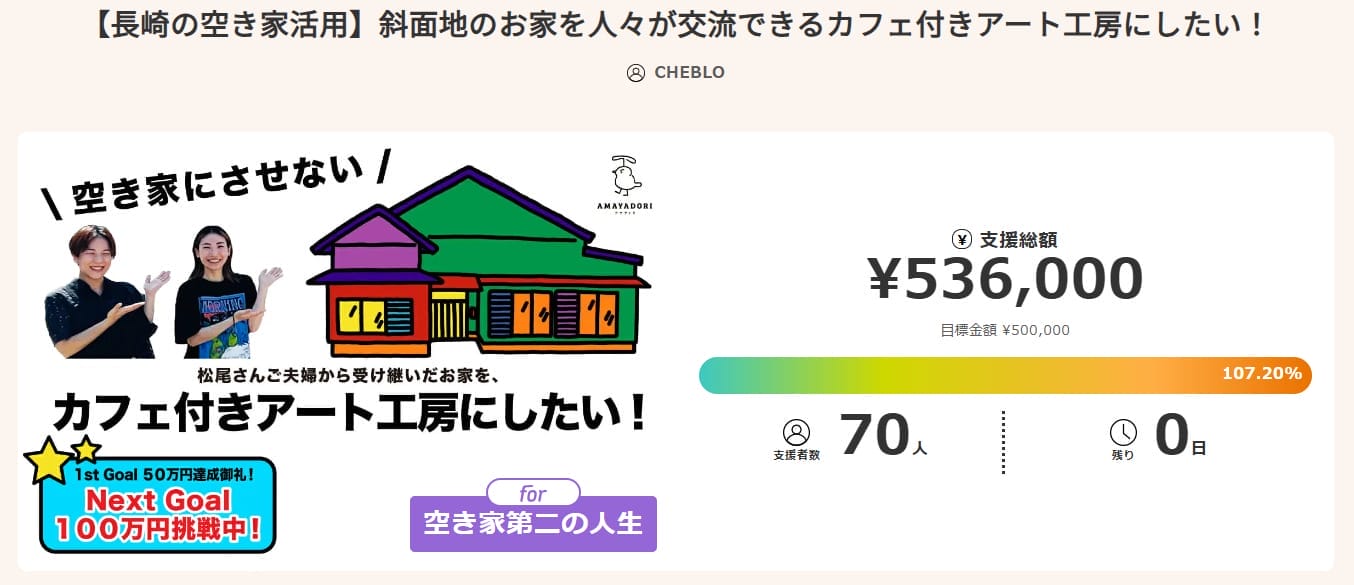 プロジェクトの目標金額は50万円で、アートや地域との交流を通して「長崎らしさ」を再生する場を目指しています。