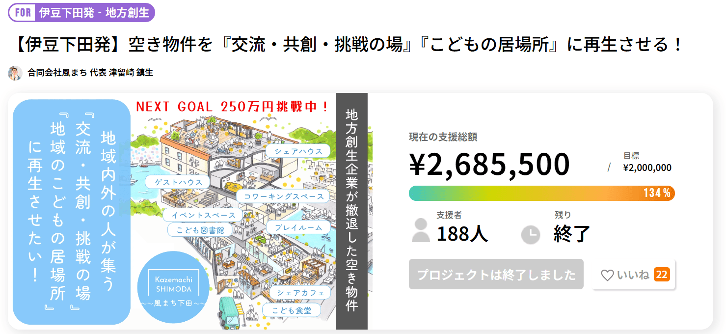 このプロジェクトは、伊豆下田の空き物件を地域の「交流・共創・挑戦の場」として再生し、子どもの居場所を提供することを目指しています。