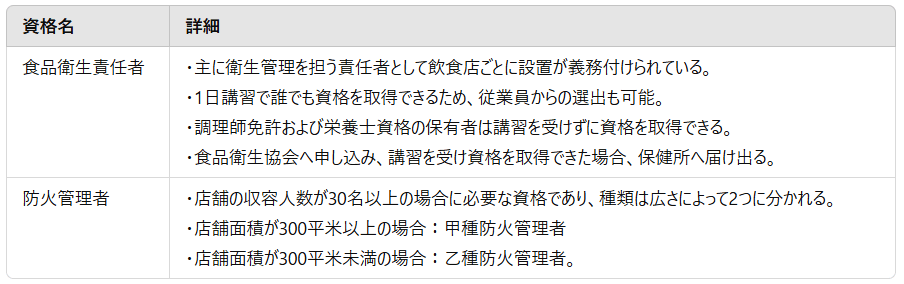 ・飲食店営業許可証:飲食店を開業する際に必ず必要な許可証であり、一般的な料理店やカフェなどがこれにあたります。店舗所在地の管轄保健所へ申請します。