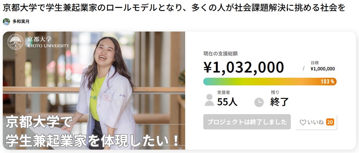リターンには、講演や取材の受付が用意されました。学業と起業を両立するモデルを示し、社会課題解決に挑む若者を増やすことを目指し、今後も活動を続けていきます。