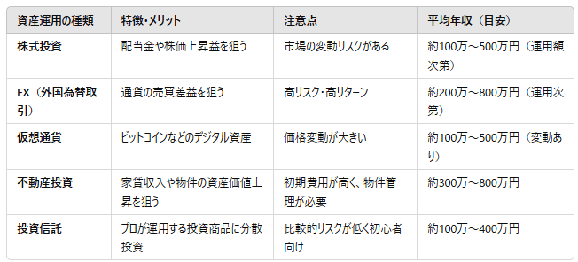 これらの資産運用を組み合わせることで、ノマドワーカーとしての収入を多角化し、安定性を高めることが可能です。特に、株式や投資信託は初心者でも比較的始めやすい投資手法として人気があります。