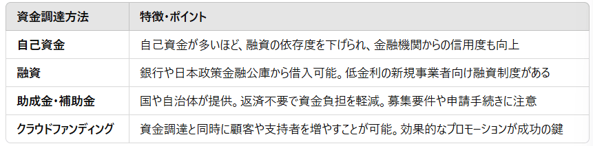 ジム開業に必要な資金を調達するためには、以下の方法があります。それぞれの特徴を理解し、最適な組み合わせを選びましょう。
