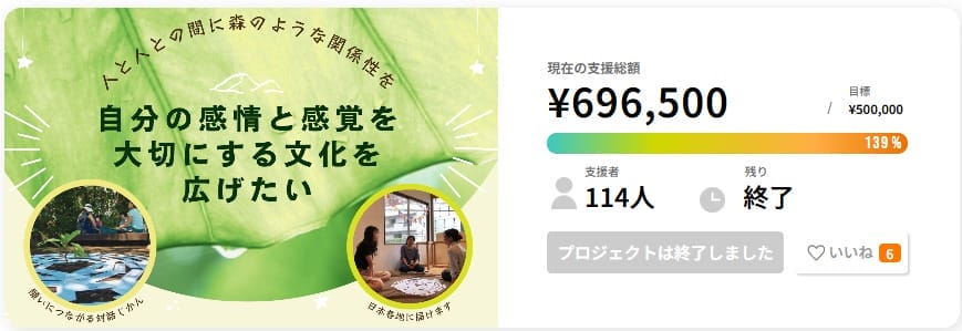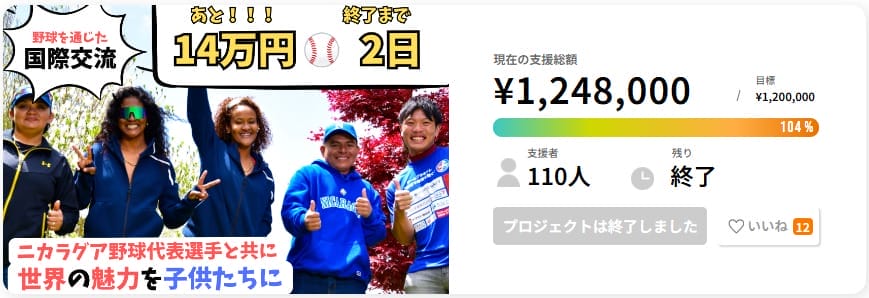 クラウドファンディングで目標金額120万円を達成し、110人の支援者からの支持を得ました。