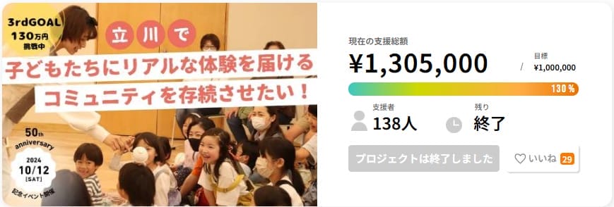 NPO法人立川子ども劇場は、東京都立川市で子どもたちにリアルな体験を提供するコミュニティの存続を目指し、クラウドファンディングを実施しました。