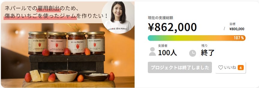 クラウドファンディングで目標金額80万円を超える86万2,000円を達成し、100人の支援者から支持を受けました。