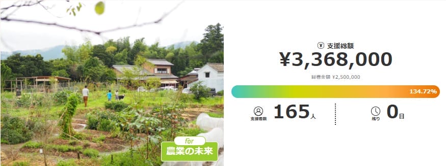 クラウドファンディングで目標金額250万円を大きく上回る約336万8,000円を達成し、165人の支援者からの支持を得ました。