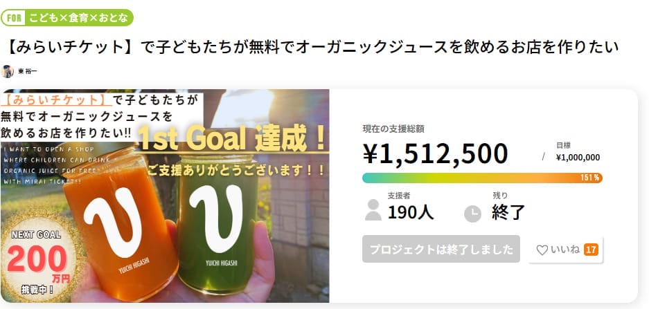 ■ 【みらいチケット】で子どもたちが無料でオーガニックジュースを飲めるお店を作りたい