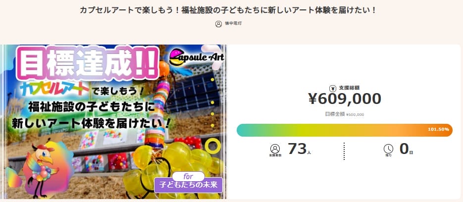 このプロジェクトは、カプセルアートを通じ福祉施設の子どもたちに対して出張ワークショップを実施したいというものです。