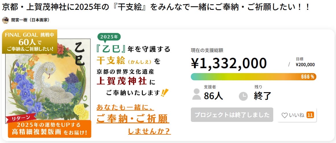 支援者は複製画やオンライン目標設定ワークショップなどのリターンを通じて、干支の力を日常に取り入れることができ、1年の運気を高める祈願の輪が広がりました。