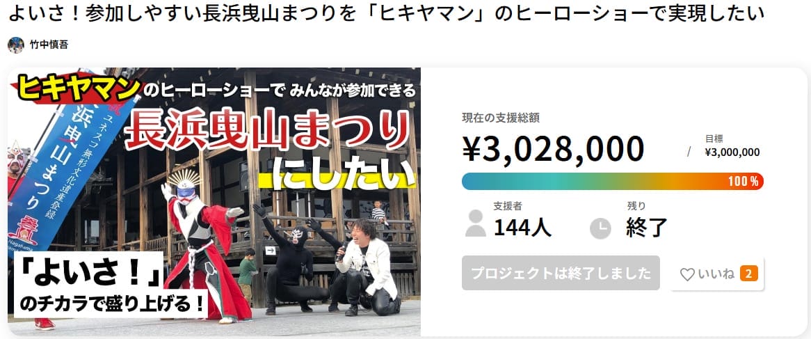 ■PJタイトル名 よいさ!参加しやすい長浜曳山まつりを「ヒキヤマン」のヒーローショーで実現したい