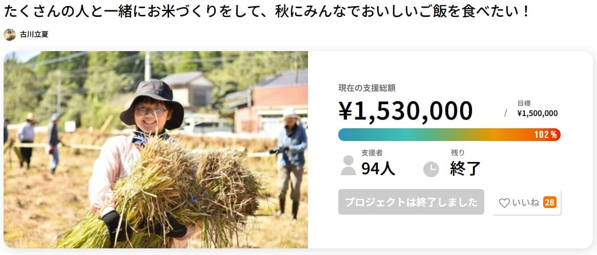 このプロジェクトは、地域の人々と一緒にお米作りを体験し、秋に収穫したお米をみんなで食べることを目的とした活動です。