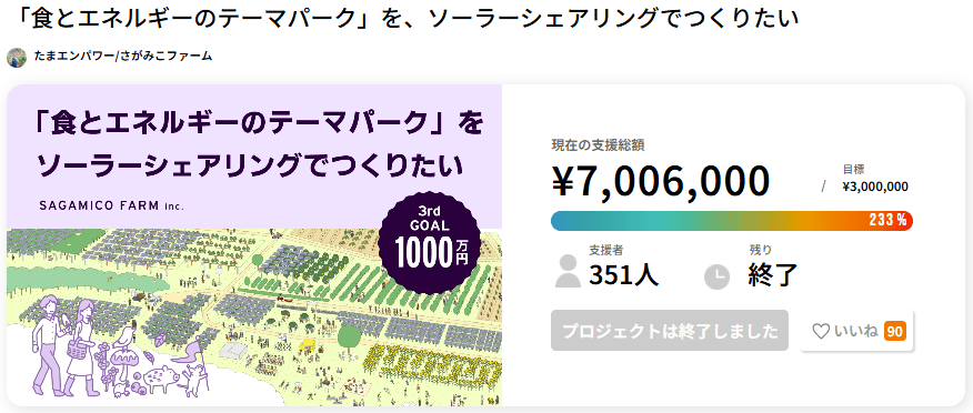 補助金や交付金を活用して農業設備などの一部を整備しつつ、クラウドファンディングでは非FIT発電所建設の初期費用や自己資金不足分をカバーしました。