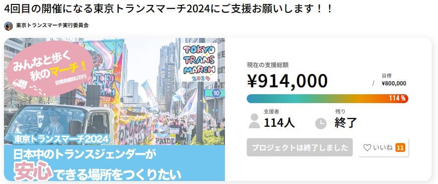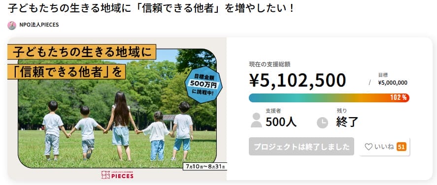1,500万円の目標に対し、最終的には約2,800万円超を集め、目標達成率186%という大成功を収めました。