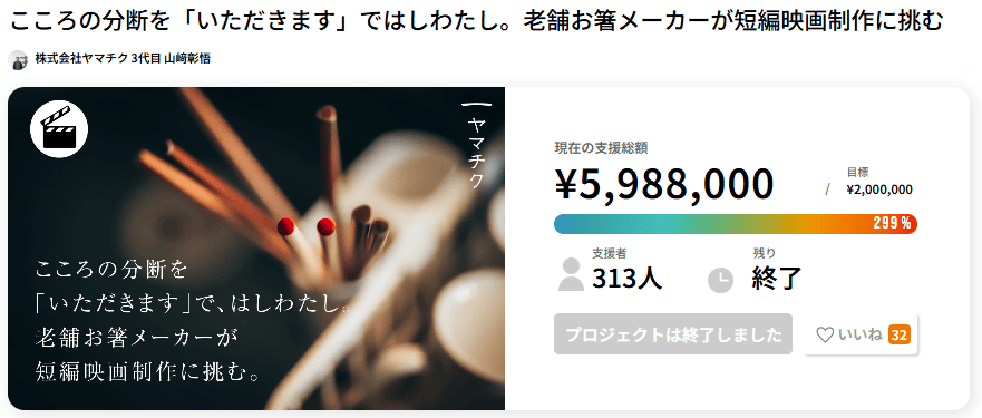 これまでも複数のプラットフォームでクラウドファンディングに挑戦しており、今回は新たな表現方法による社会的価値の発信に取り組みました。