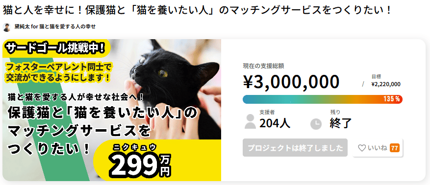 ■PJタイトル名:猫と人を幸せに!保護猫と「猫を養いたい人」のマッチングサービスをつくりたい!