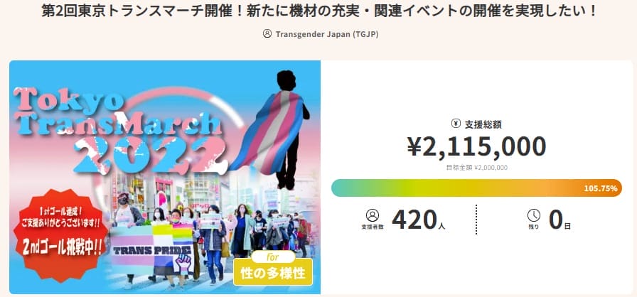 トランスジェンダーの可視化と社会的理解の促進を目的とした「東京トランスマーチ」は、毎年開催されている市民主導のイベントです。