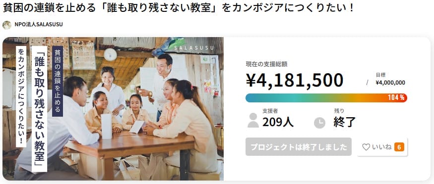 ➡ 詳細を見る https://for-good.net/project/1001984