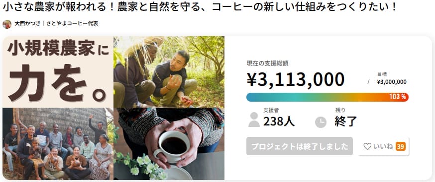 ■PJタイトル名:小さな農家が報われる!農家と自然を守る、コーヒーの新しい仕組みをつくりたい!