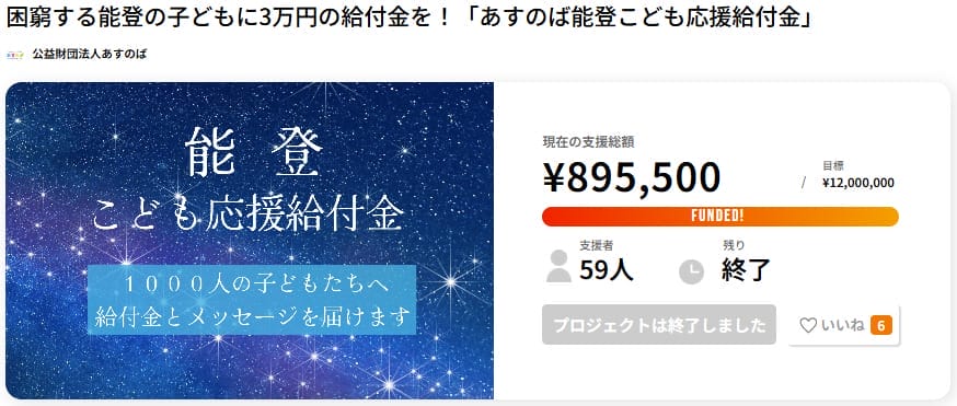 ■PJタイトル名:困窮する能登の子どもに3万円の給付金を!「あすのば能登こども応援給付金」