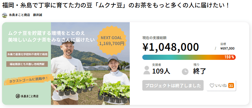 ■PJタイトル名:福岡・糸島で丁寧に育てた力の豆「ムクナ豆」のお茶をもっと多くの人に届けたい!