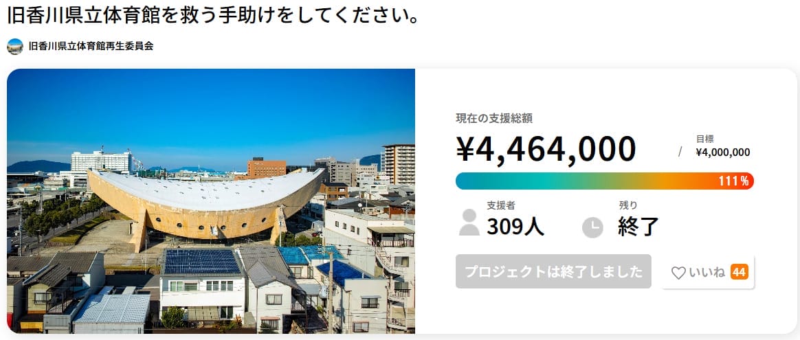 体育館保存・再生のクラウドファンディング