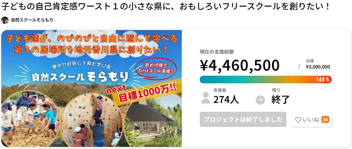 フリースクール創設のクラウドファンディング