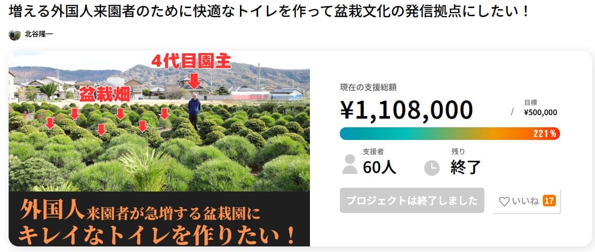 盆栽文化継承のクラウドファンディング