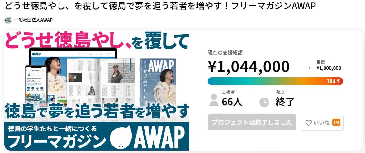 ■PJタイトル名 どうせ徳島やし、を覆して徳島で夢を追う若者を増やす!フリーマガジンAWAP