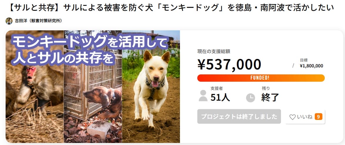 サルとの共存のためのクラウドファンディング