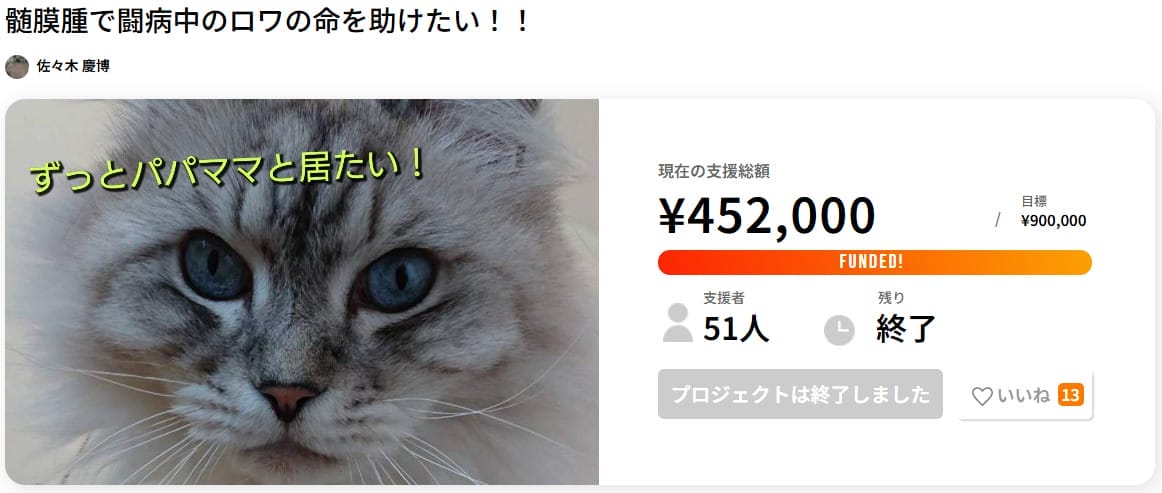 闘病中の猫を救うためのクラウドファンディング