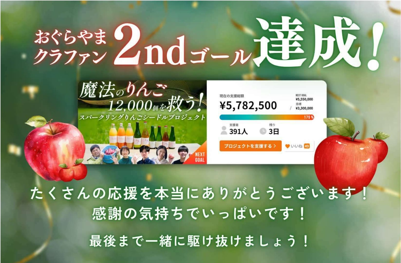 規格外で、人の口まで届かなかったりんごを、新しいかたちで届けたいという思いから、今回のクラウドファンディングを始めました。