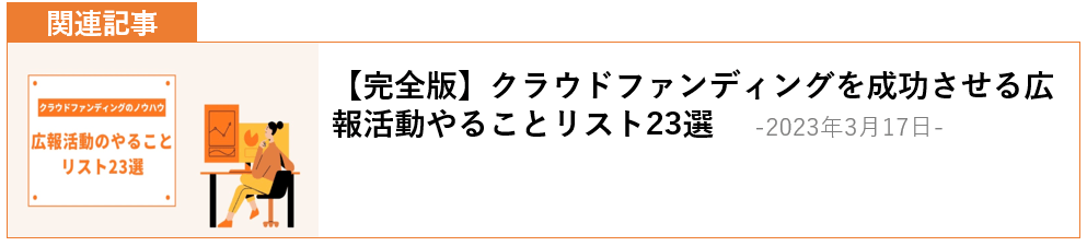 <クラウドファンディングの広報活動のポイントについての関連記事はこちら>