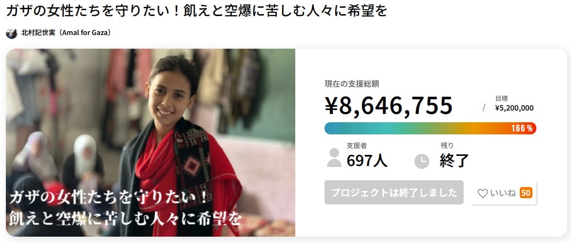 当初の目標金額は100万円でしたが、支援の総額は200万円ほどに達しており、多くの方に注目された国際協力の一例だと言えるでしょう。