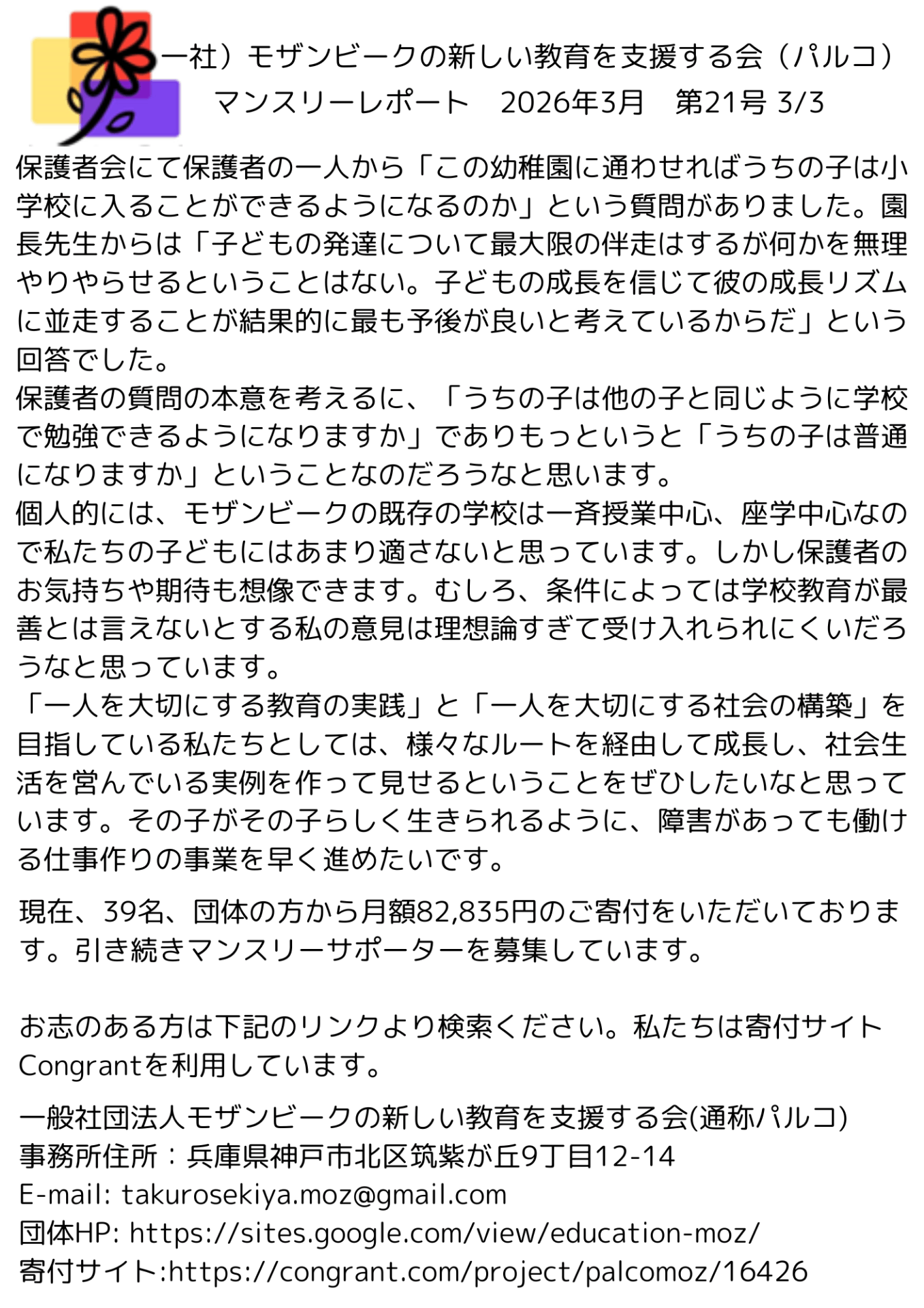 アフリカのモザンビークで障害があっても無くても安心して生活できる社会を作りたい!