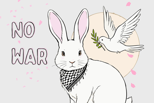 サポーターのみなさま、こんにちは。ガザのデザイナーロザンが考えた今回のデザインのモチーフは、反戦ウサギです。「世界中から戦争がなくなりますように」と記されたイラストをXに投稿した人気イラストレーターが、一...