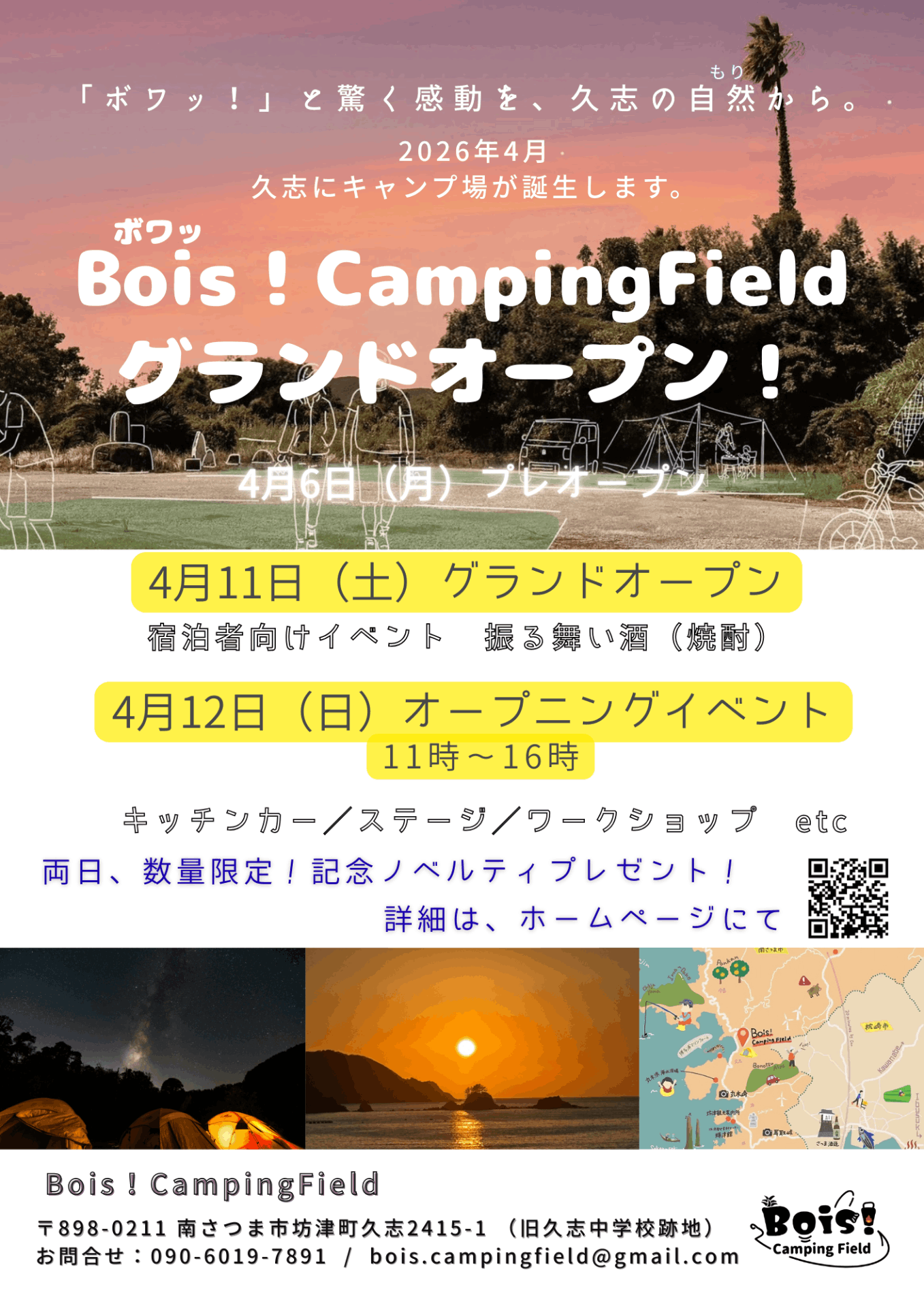 今後のキャンプ場オープンスケジュールは下記の通りです。