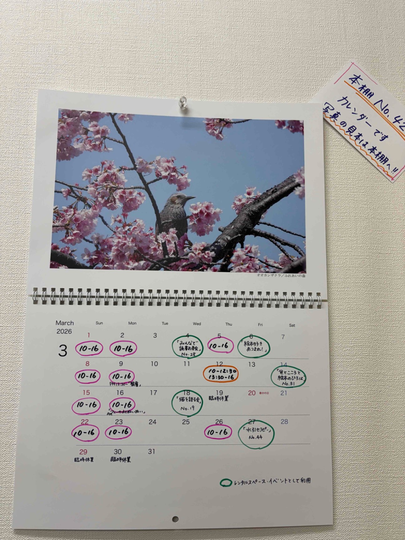 本棚でも見れるのですが、せっかくなので店舗内のカレンダーをこちらにしました