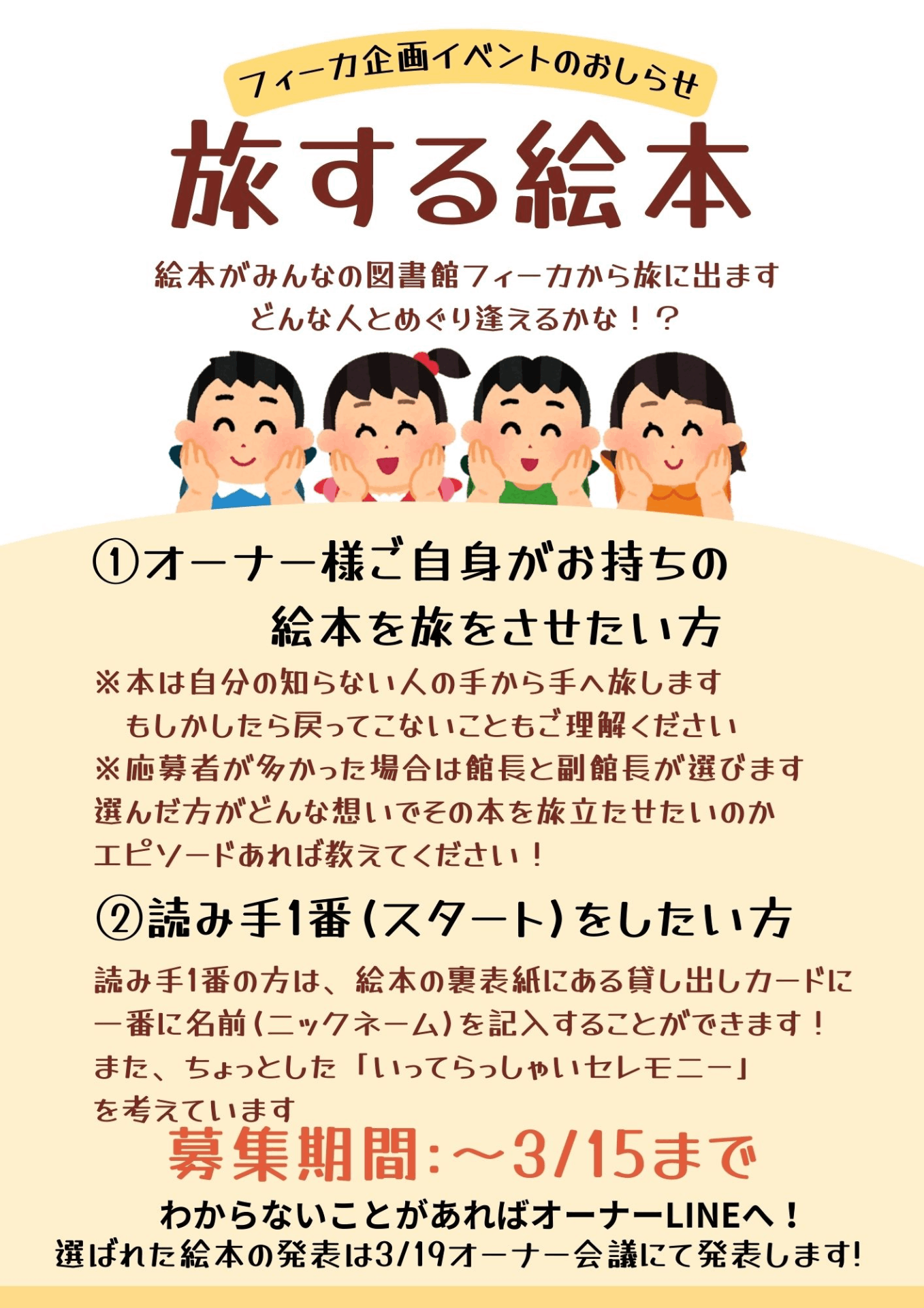 直接自分の本を使って欲しいという方、または自分が絵本をまわす1番手になりたい!という方を募集始めました。