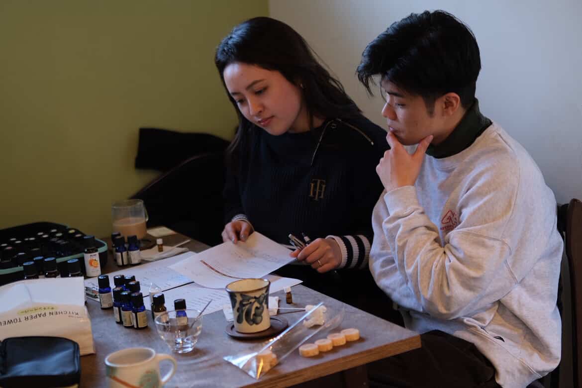 今回は“香”にまつわるツアーということで、ここでオリジナルのアロマ調製ワークショップを企画しました。